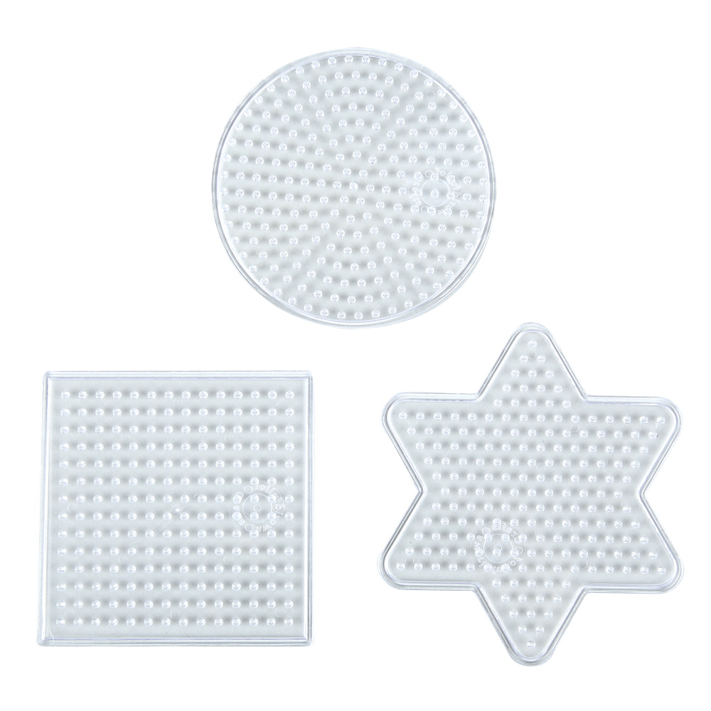 Untergelegte Musterkarten (652005, separat bestellbar) sind durch die transparente Platte aus Kunststoff gut zu sehen. Für Bügelperlen klein 0,5 cm.