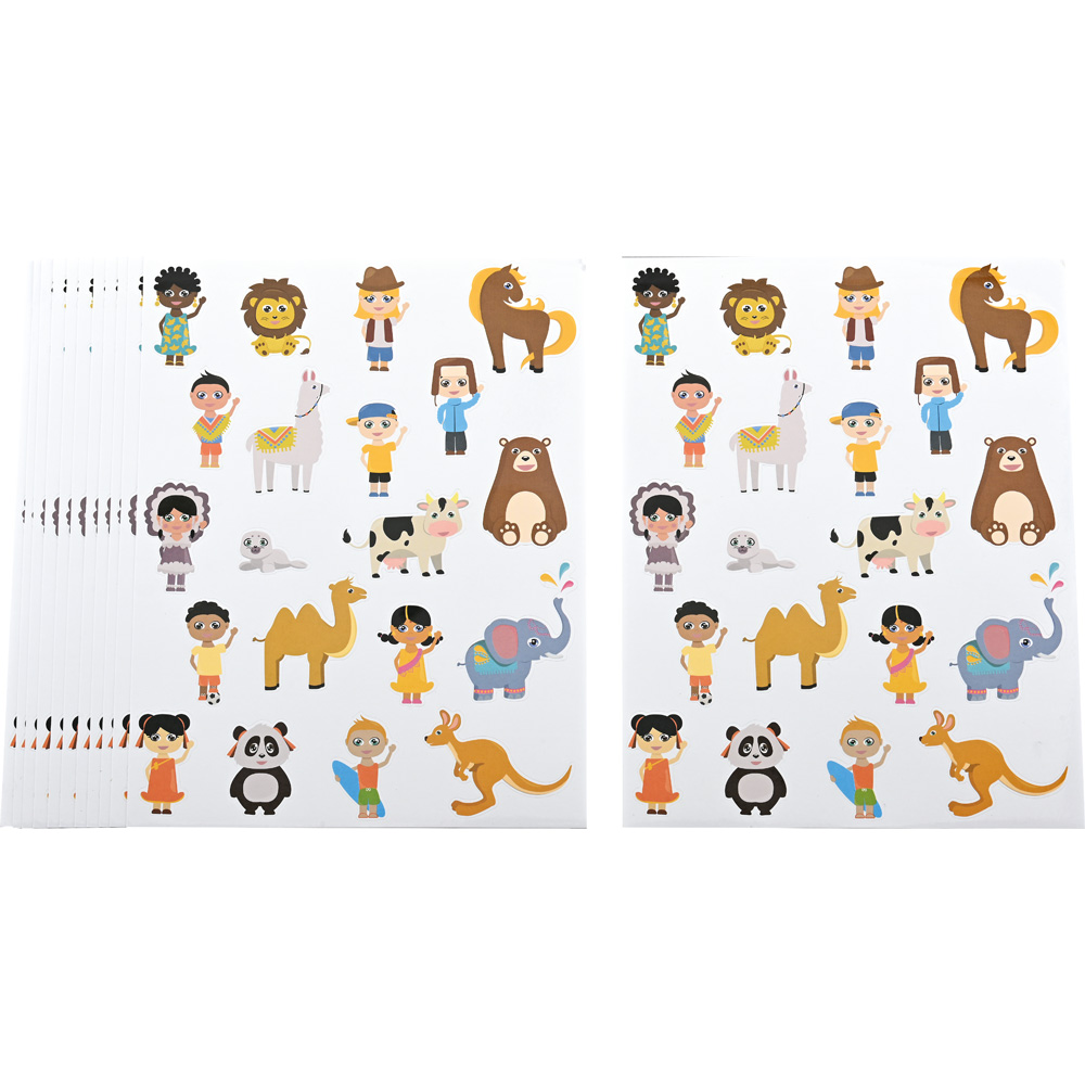 Nach eigenen Vorstellungen können die Sticker bei der Bastelarbeit eingesetzt werden. Mithilfe des QR-Codes auf der Verpackung kann die Weltkarte heruntergeladen und ausgedruckt werden. Die Kinder kleben dann die Aufkleber an den entsprechenden Stellen ein und es können dabei diverse kulturelle Themen besprochen werden.
