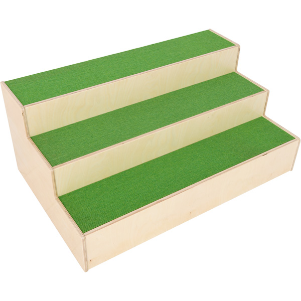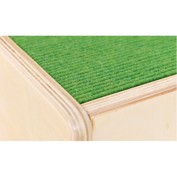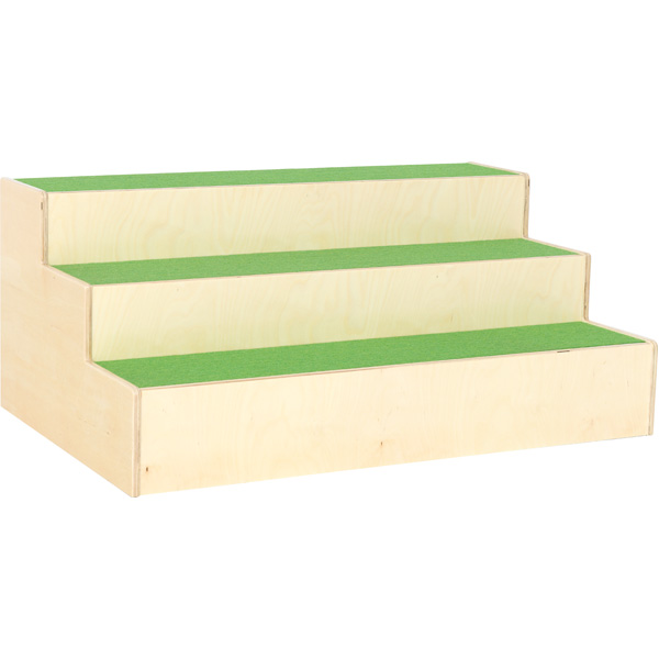 Stufenpodeste laden nicht nur zum Spielen ein, sondern lassen sich auch ganz einfach zur Sitzgelegenheit fürs Vorlesen, kleine Aufführungen oder den Morgenkreis umfunktionieren. Damit noch mehr Zuschauer auf den Rängen Platz finden, kann das Eckmodul beliebig mit geraden Stufenpodesten kombiniert werden.