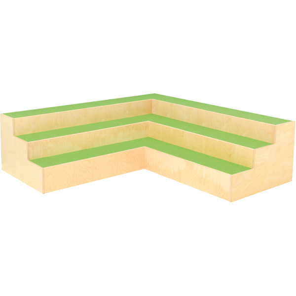 Stufenpodeste laden nicht nur zum Spielen ein, sondern lassen sich auch ganz einfach zur Sitzgelegenheit fürs Vorlesen, kleine Aufführungen oder den Morgenkreis umfunktionieren. Damit noch mehr Zuschauer auf den Rängen Platz finden, kann das Eckmodul beliebig mit geraden Stufenpodesten kombiniert werden.