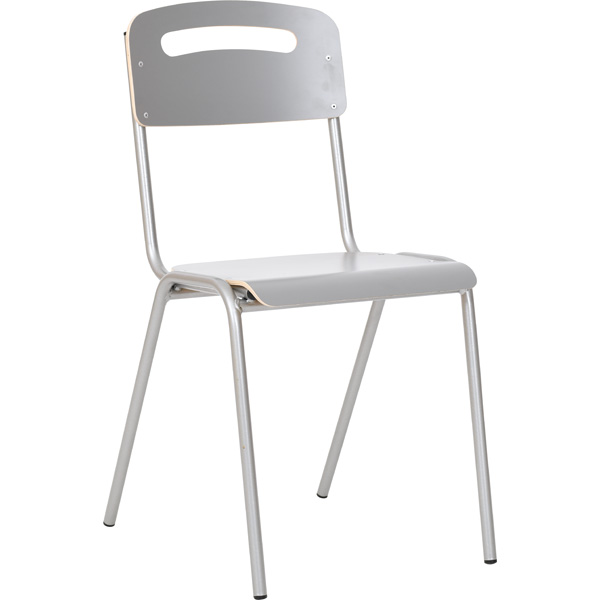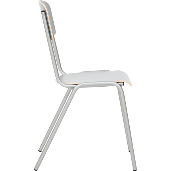 Gestell der H-Stühle aus rundem Metallrohr (22 mm), Sitzfläche und Rückenlehne aus HPL-beschichtetem Sperrholz (Stärke: 8 mm). Profilierte Sitzfläche mindert beim Sitzen den Druck auf die Kniekehle; bequeme, leicht gerundete Rückenlehne bietet hohen Komfort und stützt optimal. Durch die Aussparung im Rückenteil lässt sich der Stuhl bequem tragen. Die weit nach hinten ausgestellten Stuhlbeine sorgen für hohe Standsicherheit, zur Schonung des Fussbodens sind sie mit Kunststoffkappen ausgestattet. HPL-Beschichtung auf Sitzfläche und Rückenlehne schützt wirksam vor Beschädigung - kratz- und stossfest, wasserresistent und leicht zu reinigen. Die Produktion erfolgt gemäss DIN EN 1729.