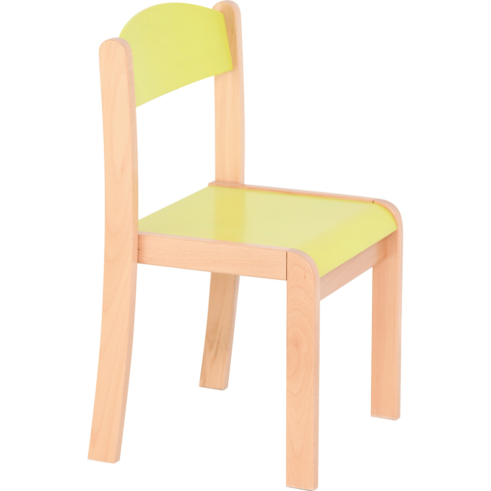 Stabile Kinderstühle aus Holz. Das Gestell ist aus lackiertem Buche-Massivholz (Querschnitt 22 x 45 mm). Die profilierte Sitzfläche (Sperrholz, 6 mm stark) mindert beim Sitzen den Druck auf die Kniekehle, und die bequeme Rückenlehne unterstützt die richtige Körperhaltung. Stühle Philip sind mit einer zusätzlichen, stabilisierenden Leiste zwischen den vorderen Stuhlbeinen ausgestattet. Kratzschutz an den Stuhlbeinen verhindert Schäden am Fussboden. Dank ihrer Konstruktion sind die Stühle platzsparend und sicher stapelbar (bis 5 Stck.). Die Produktion erfolgt gemäss DIN EN 1729.