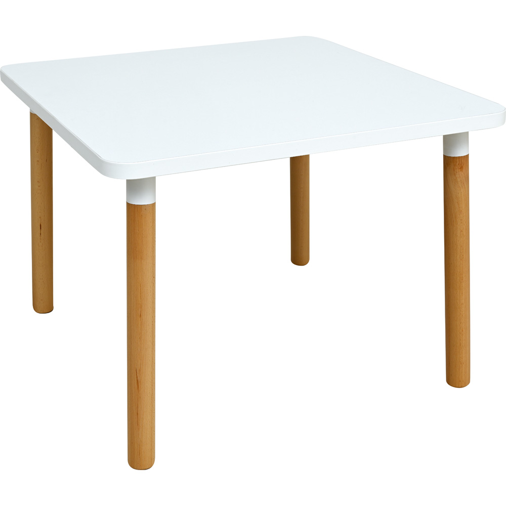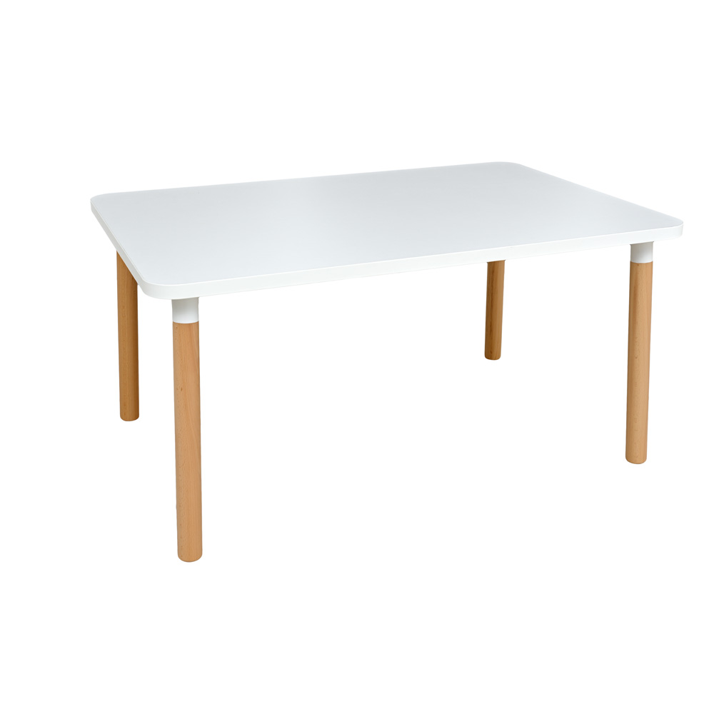 Aus HPL-beschichteter Spanplatte (28 mm) in Weiss, mit ABS-Kante (Stärke 2 mm). Dieses Oberflächenmaterial ist extrem belastbar und wird bevorzugt für hoch beanspruchte Flächen im Möbelbau eingesetzt. Solche Tischplatte verträgt auch mal einen Stoss! Abgerundete Ecken sorgen für die Sicherheit der Kinder und verschönern gleichzeitig das Aussehen.