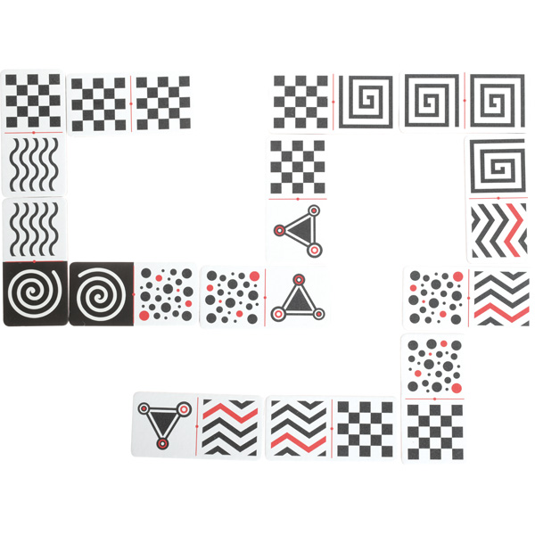 Auf einer Seite klassisches Dominospiel mit Punkten, auf der anderen Seite wartet eine ganz besondere Variante… Die Muster in kräftigen Farben lassen sich ertasten und machen das Spiel somit auch für Kinder mit Sehbehinderung zu einem grossen Vergnügen. Kindern ohne Sehschwierigkeiten können die Augen verbunden werden, sodass sie eine neue Erfahrung gewinnen und das Spiel noch einmal neu kennen lernen.