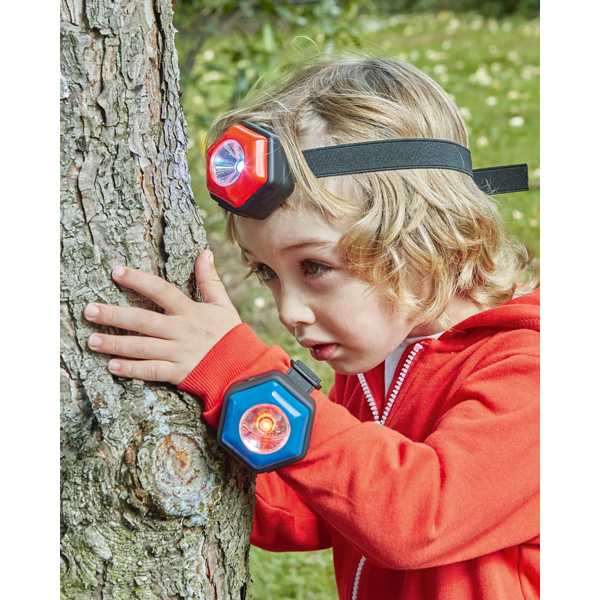 Durch das Klettband können die Taschenlampen um das Handgelenk oder um den Kopf getragen werden. Durch Drücken der Taste ändert sich die Farbe des Lichts (weiss, rot, blau und grün). Ausserdem haben die Lampen einen Magneten eingebaut, sodass man sie an magnetischen Oberflächen befestigen kann. Für die Taschenlampe werden 2 AAA-Batterien benötigt (nicht enthalten).