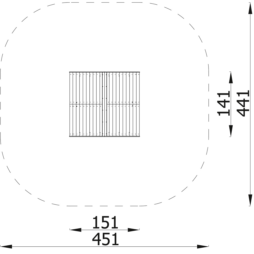 • Sicherheitsbereich: 451 x 441 cm (Fläche: 18 m²)