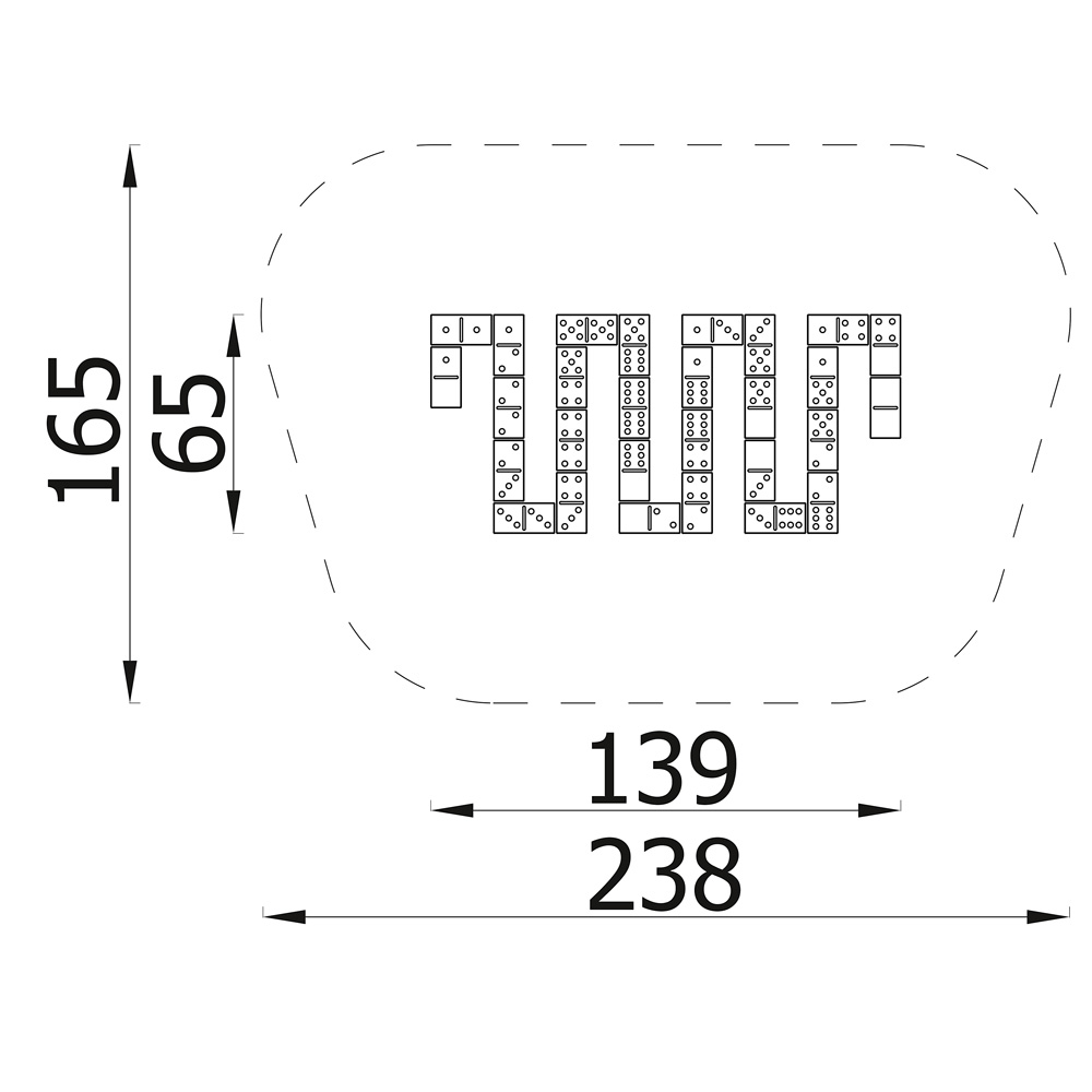 Domino ist ein Spiel, das mathematisches, logisches und strategisches Denken schult. Die Kinder lernen zählen und Muster zu erkennen. Im praktischen Schnürbeutel - erleichtert den Transport und die platzsparende Aufbewahrung. • 28 Spielsteine, Masse: 9 x 18 cm • aus wetterfestem HDPE-Kunststoff (Stärke: 15 mm) • Anzahl der Nutzer: für 1 und mehr Spieler • Masse (ausgelegt): 139 x 65 cm • Sicherheitsbereich: 238 x 165 cm (Fläche: 3,5 m²) • von 1 bis 7 Jahren