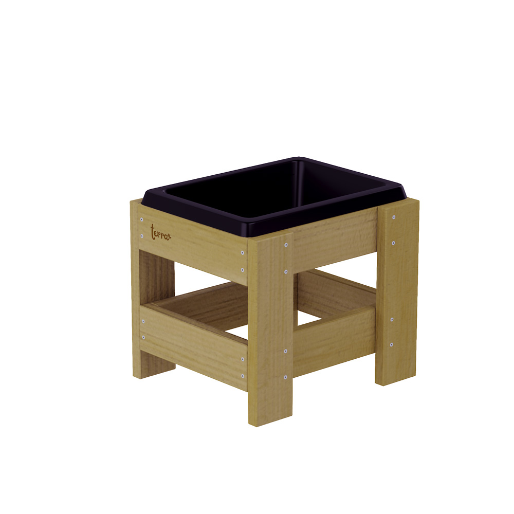 Die Terra-Pflanzkästen eignen sich dank der stabilen Gestelle und robusten Kunststoffbehälter sowohl zum Bepflanzen als auch zum Spielen mit Wasser, Sand und anderen Naturmaterialien. Sie sind in 3 Höhen erhältlich, so dass sie von Kindern unterschiedlicher Grösse und für unterschiedliche Spiele genutzt werden können oder aber diverse gestalterische Möglichkeiten beim Aufstellen als Pflanzkästen eröffnen.