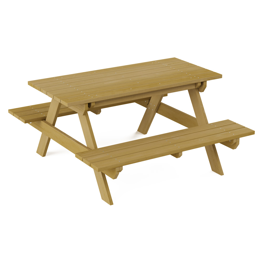 Die stabile Sitzgruppe für den Aussenbereich ist die perfekte Ergänzung zur Terra-Kollektion. Hier kann nicht nur das Picknick stattfinden, sondern auch eine kleine Spielrunde oder mit Naturmaterialien gebastelt werden. • Masse Tischplatte: B 120 x T 54 cm • Anzahl der Nutzer: 6 • Grundfläche: 120 x 129 cm • Sicherheitsbereich: 420 x 429 cm (Fläche: 16 m²) • Gesamthöhe: 53 cm • max. freie Fallhöhe: 53 cm • Sitzhöhe: 31 cm • von 1 bis 7 Jahren