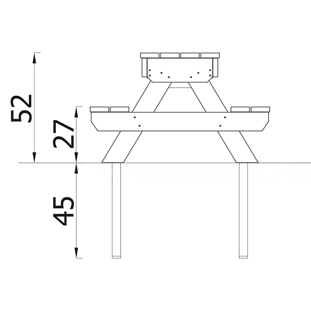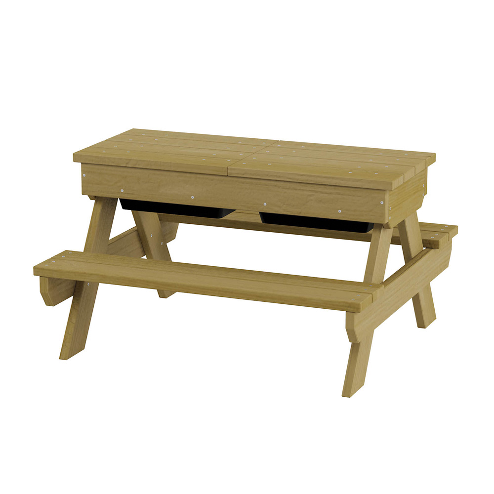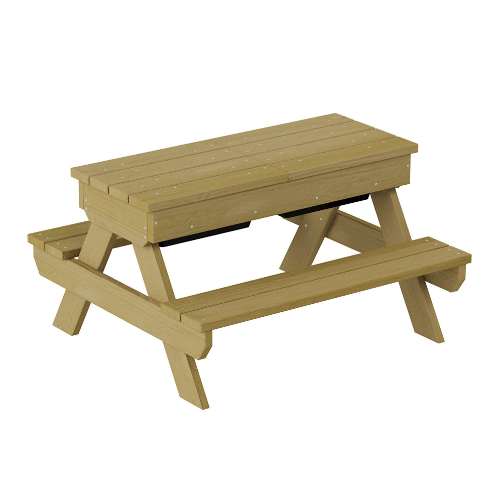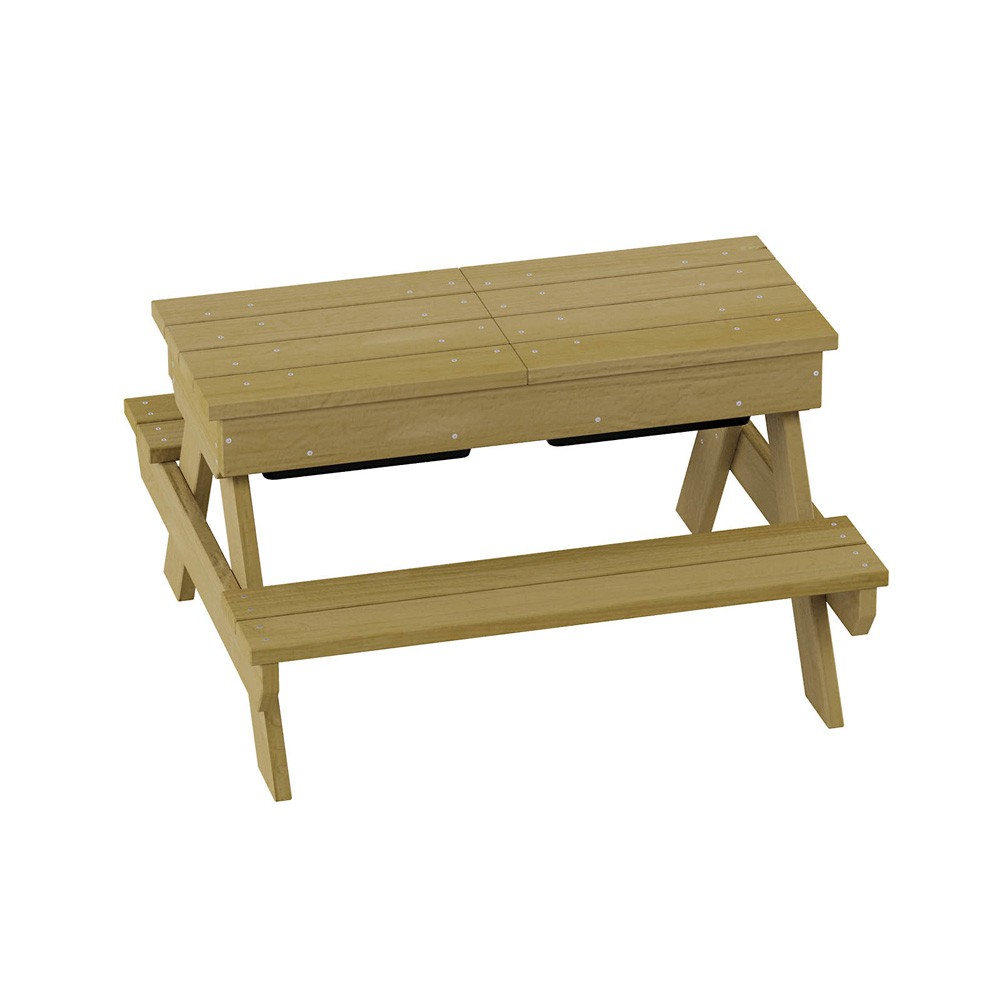 Die stabile Sitzgruppe für den Aussenbereich ist die perfekte Ergänzung zur Terra-Kollektion. Hier kann nicht nur das Picknick stattfinden, sondern auch eine kleine Spielrunde oder mit Naturmaterialien gebastelt werden. Alles, was dafür benötigt wird, lässt sich bequem in den beiden Behältern unter der Tischplatte aufbewahren. Die Sitzgruppe gibt es auch in einer Version ohne Behälter (NV58109PZ, separat zu bestellen). • 2 Behälter aus hochwertigem Kunststoff, Masse: 30 x 20 x 12 cm • Masse Tischplatte: B 90 x T 36 cm • Anzahl der Nutzer: 4 • Grundfläche: 90 x 85 cm • Sicherheitsbereich: 390 x 385 cm (Fläche: 13,1 m²) • Gesamthöhe: 52 cm • max. freie Fallhöhe: 52 cm • Sitzhöhe: 27 cm • von 1 bis 7 Jahren