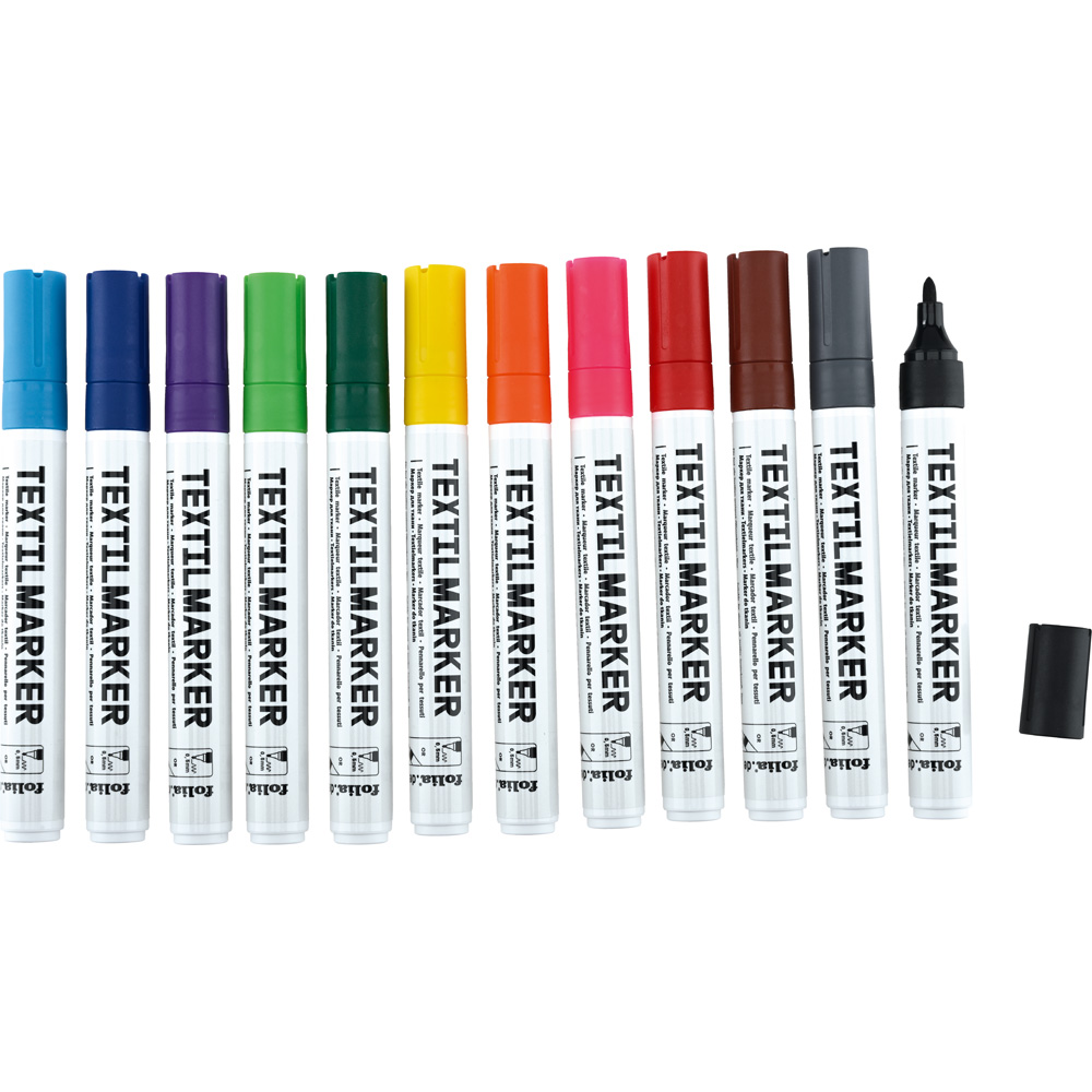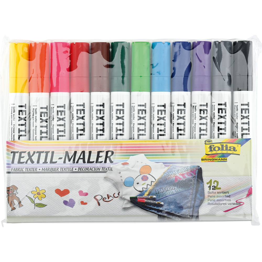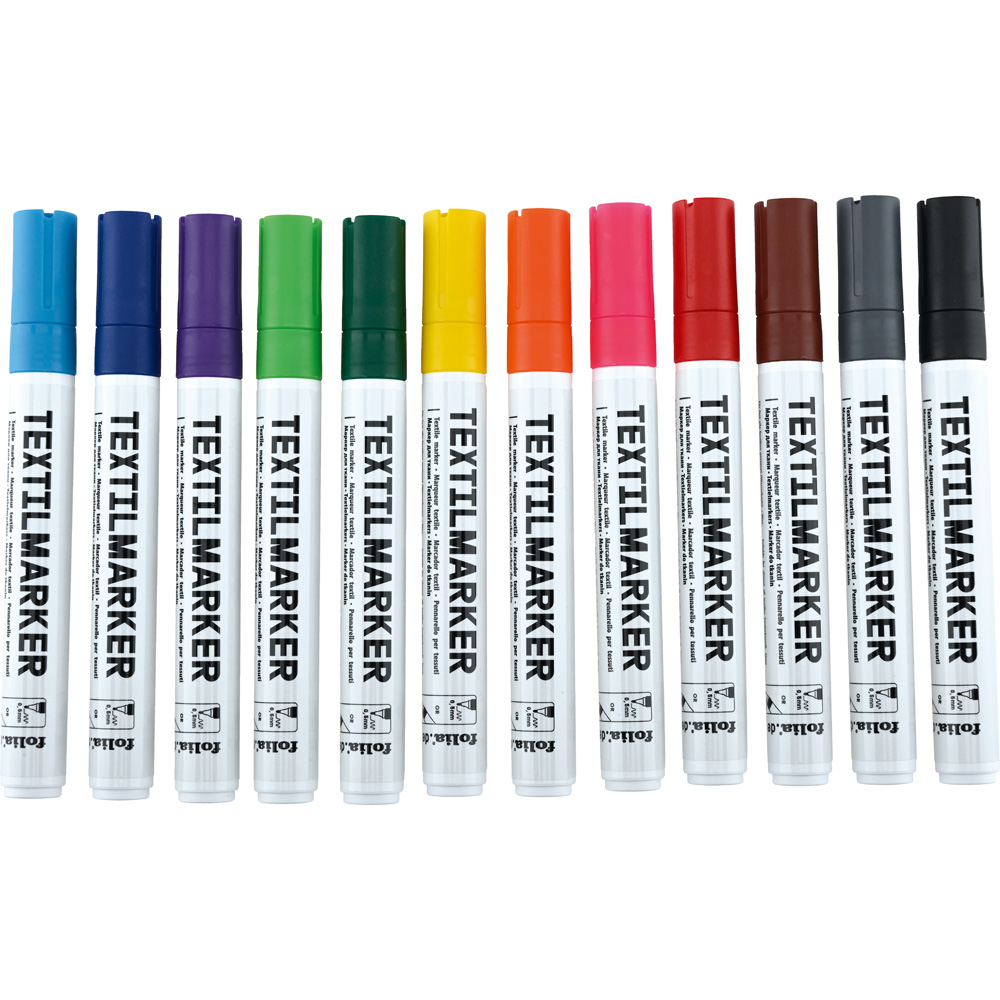 Ein Set farbiger Marker für das schnelle Erfolgserlebnis beim Bemalen von Textilien. Die Stifte mit feiner, aber robuster Spitze sind geeignet für Muster, Dekorationen und Schriftzüge auf fast allen Stoffen. Mit farbigen Gestaltungsbeispielen sowie Anleitung.