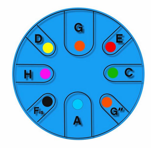 • Farbpunkte zum Aufkleben auf die Zungen für farbige Noten