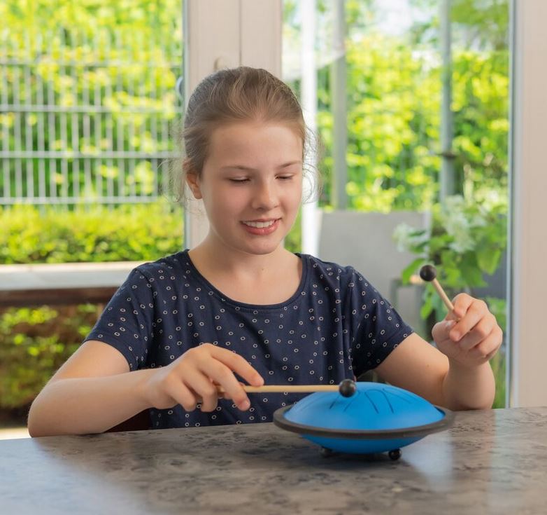 Das Spielen auf der Pocket-Trommel fördert Feinmotorik, Rhythmusgefühl, Gehörbildung und Koordination. Durch die intuitive Anordnung der Zungen können Melodien leicht erlernt werden. Die beiliegenden Farbpunkte ermöglichen das Spielen mit farbigen Noten, was Kindern den Einstieg zusätzlich erleichtert.