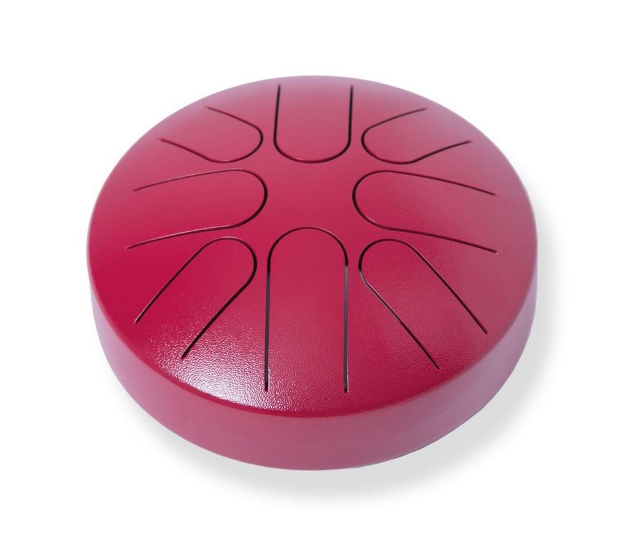 • Stahlzungentrommel aus lackiertem Stahl (weinrot)