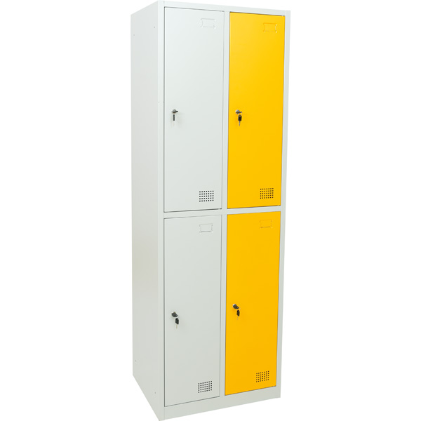 Passend zum Korpus 805122 und 805123. Die Türen aus pulverbeschichtetem Stahlblech sind mit Lüftungsschlitzen und Platz für Namensschilder ausgestattet. Mit sicherer 1-Punkt-Verriegelung. Passender Masterschlüssel 805142 separat bestellbar.
