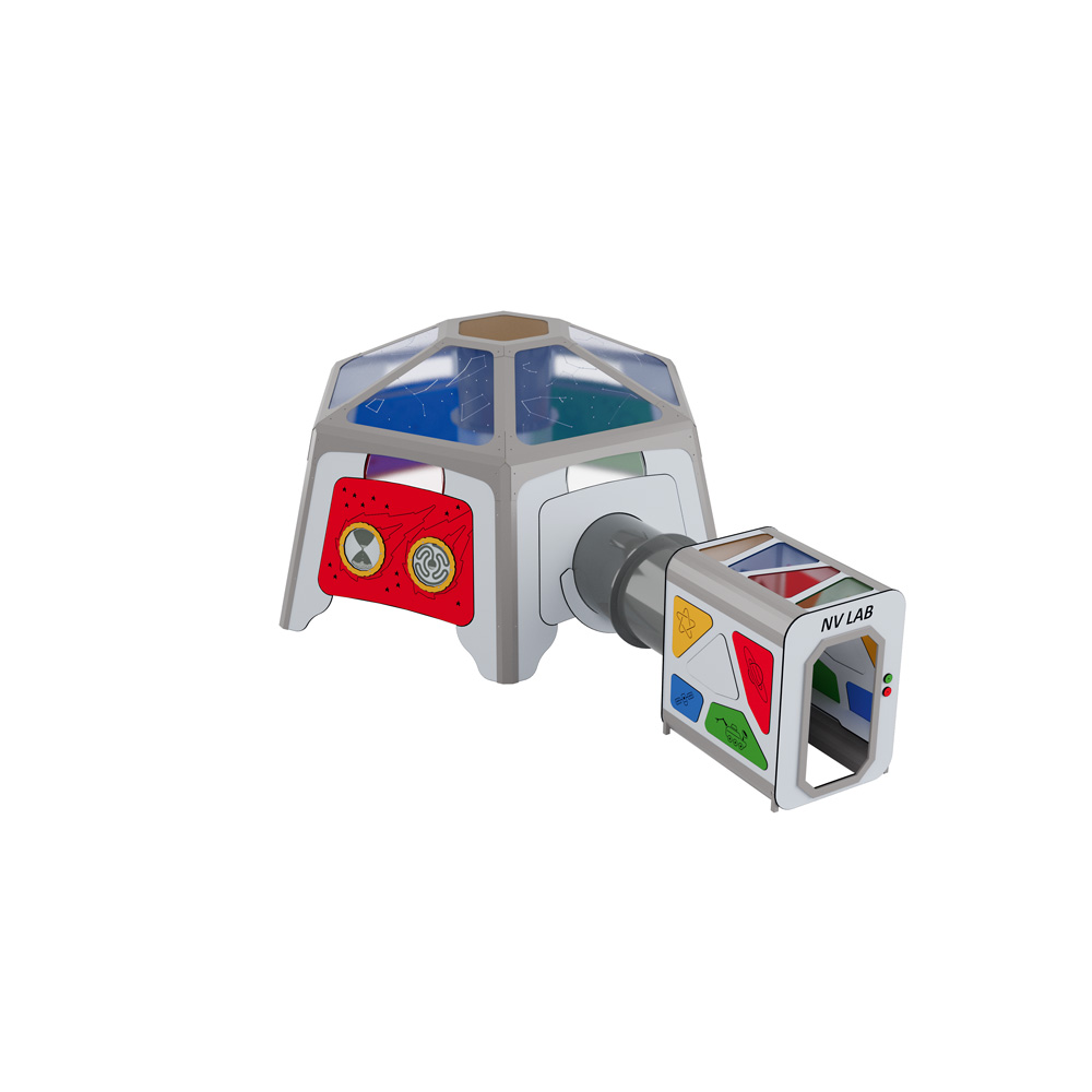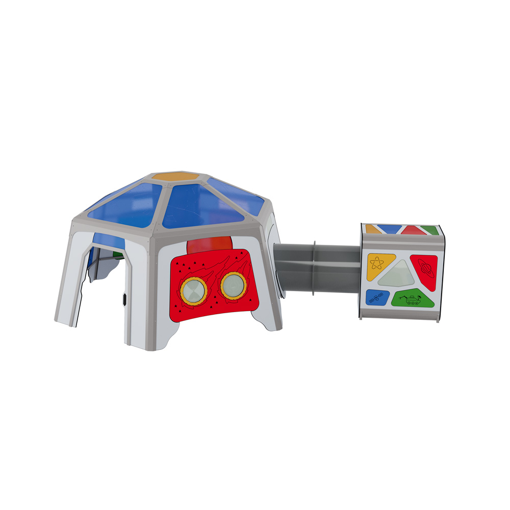 Morgens als Astronaut Abenteuer erleben und abends wieder sicher auf der Erde landen. Mit der Spielplatzserie Universum können kleine Raumfahrer ihre Träume ausleben. Sie eignet sich ideal für Kindergarten und Schule und zeichnet sich durch einzigartige Anlagen, die die Fantasie der Kinder beflügeln, sowie hochwertige Materialien und eine exzellente Verarbeitung aus. Alle Geräte entsprechen DIN EN 1176 und sind zertifiziert, erfüllen somit die Voraussetzungen für den öffentlichen Bereich. • Material: Grundkonstruktion und Pfosten aus verzinktem Stahlrohr, dank Pulverbeschichtung mit Polyesterfarbe garantiert witterungsbeständig • Wandelemente aus widerstandsfähiger HDPE-Platte • Trittflächen rutschsicher dank EPDM-Gummigranulat • Rutschen und Befestigungselemente aus Edelstahl • Seile aus PP mit Stahlkern