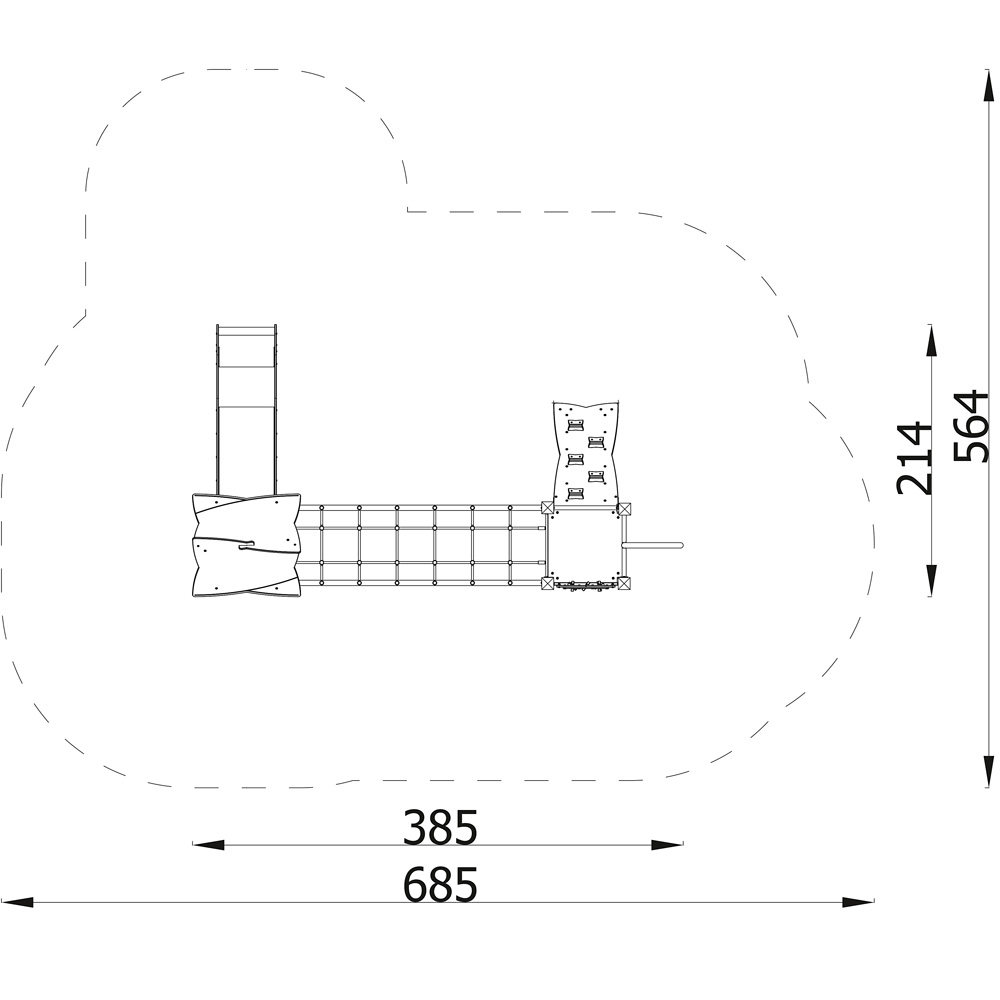 Die Podestkombination mit Hängeseilbrücke verspricht Nervenkitzel und Spielspass zugleich. Der Aufstieg gelingt über die Kletterwand, die die Geschicklichkeit der kleinen Kletterer fördert. Für die Seilbrücke sind Mut, Bewegungskoordination und Konzentration erforderlich. Und für den rasanten Abgang stehen Rutsche und Feuerwehrstange bereit. Eine Tic-Tac-Toe-Spielwand fordert auch die kleinen grauen Zellen heraus. • Anzahl der Nutzer: 8 • Grundfläche: 385 x 214 cm • Sicherheitsbereich: 685 x 564 cm (Fläche: 27,5 m²) • Gesamthöhe: 256 cm • max. freie Fallhöhe: 90 cm • ab 3 Jahre