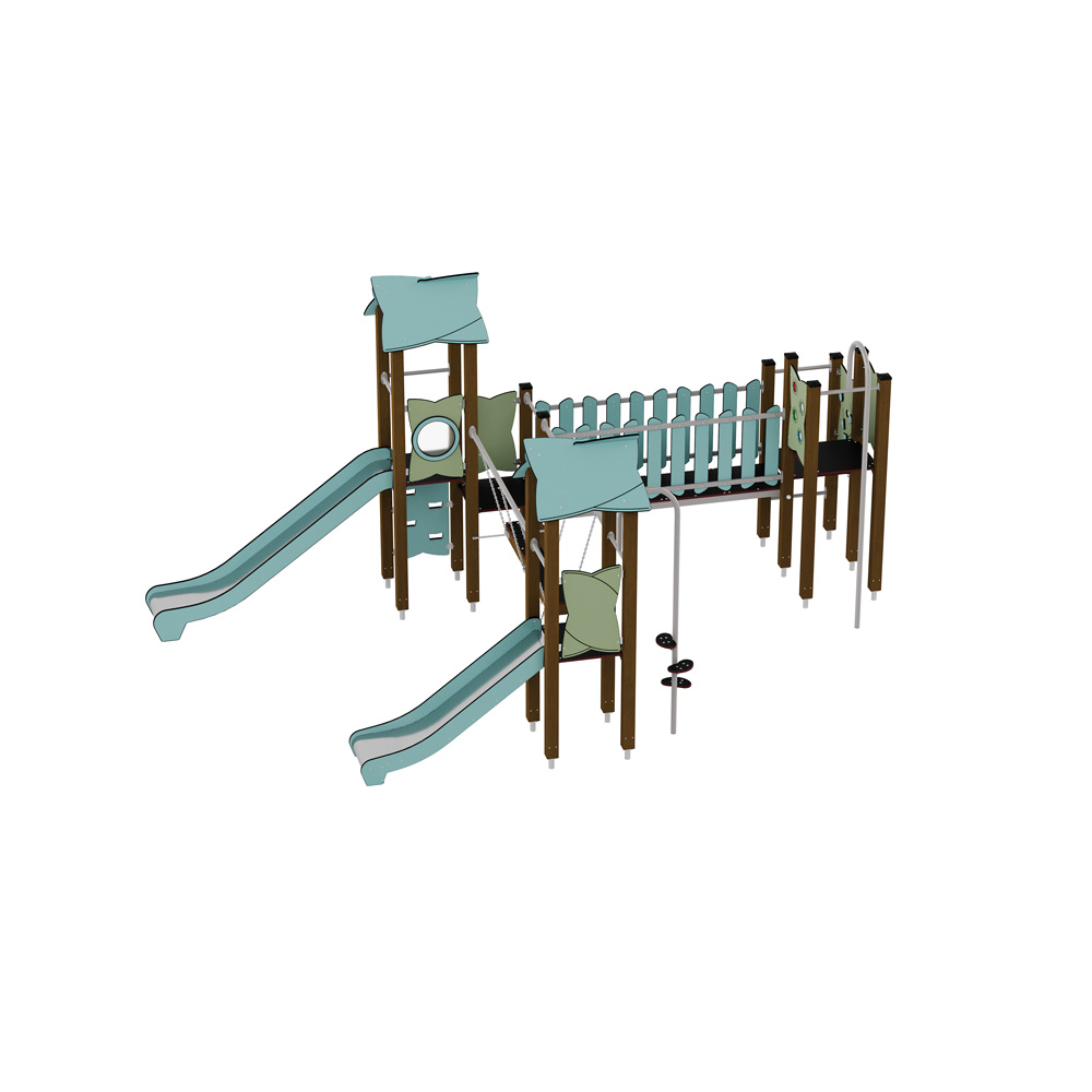 Für die Serie verwenden wir hochwertige Materialien, die eine lange Haltbarkeit garantieren. Alle Geräte entsprechen DIN EN 1176, sind zertifiziert und erfüllen die Voraussetzungen für den öffentlichen Bereich. Die Geräte sind in zwei Grundvarianten erhältlich – mit Holzpfosten (H) in Nussbaumfarbe oder Metallpfosten (Me) in drei modernen Farben zur Auswahl. Wände und Dächer sind passend dazu in drei perfekt aufeinander abgestimmten Farbkombinationen wählbar, welche hervorragend zum Charakter der städtischen Landschaft passen: A - Wände altrosa, B - Wände pastelltürkis, C - Wände blassgrün.