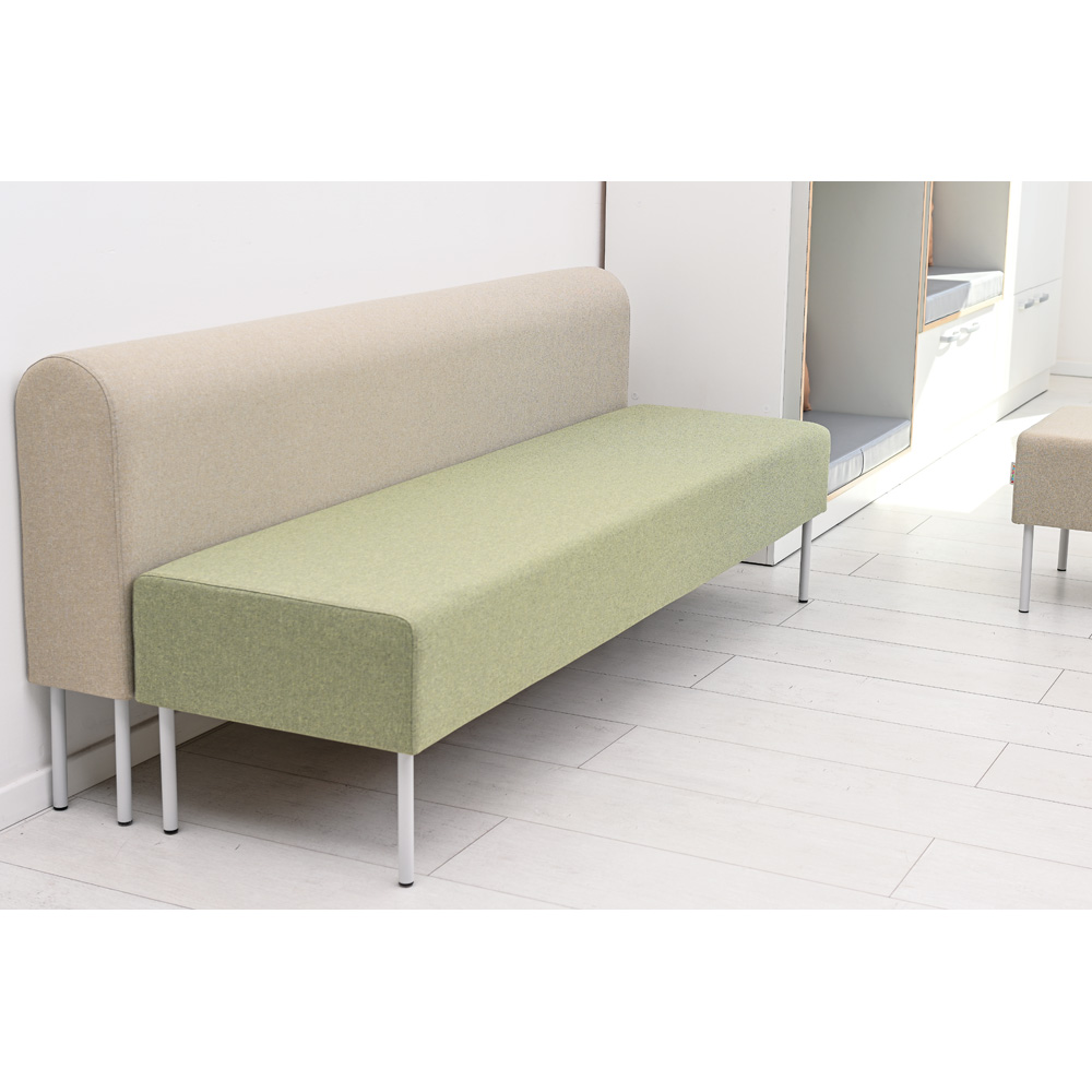 Die Sitzmöbel sind in diversen Breiten erhältlich und lassen sich mit Lehnen in 2 Höhen kombinieren. Die einzelnen Sitze können zusätzlich mit einer Zwischenwand getrennt werden. Diese darf nicht den seitlichen Abschluss bilden, sondern muss zwischen 2 Elementen befestigt werden.