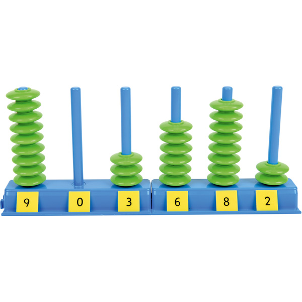 Mit den aufgesteckten Perlen lassen sich ganz einfach erste Zähl- und Rechenübungen durchführen. In einer praktischen Kunststoffbox.