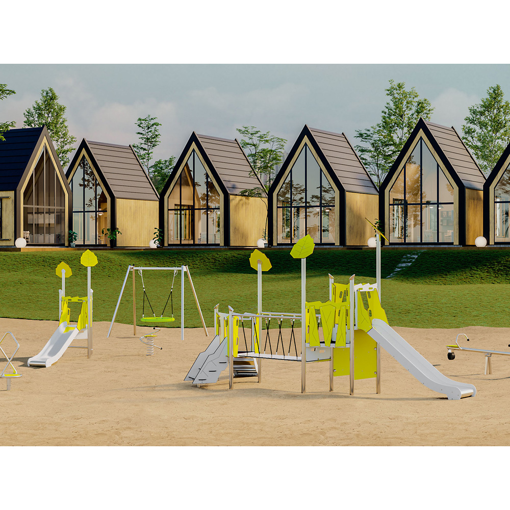 Die Spielplatzserie Verto zeichnet sich durch hochwertige Materialien und ein modernes, anspruchsvolles Design aus. Die elegante Optik von Edelstahl harmoniert hervorragend mit dem hellen Limetteton der Wandelemente. Die Serie bietet Spielgeräte in zwei Ausführungen für unterschiedliche Altersgruppen - eine einfachere, die bereits für die Kleinsten ab einem Alter von einem Jahr geeignet ist, und eine anspruchsvollere für ältere Kinder, die sich grösseren Herausforderungen stellen wollen. Das absolut sichere und durchdachte Design sorgt für grossartigen Spielspass an diesem idealen Ort, um die körperliche Fitness zu entwickeln. Alle Geräte entsprechen DIN EN 1176 und sind zertifiziert, erfüllen somit die Voraussetzungen für den öffentlichen Bereich. Wir gewähren 2 Jahre Garantie.