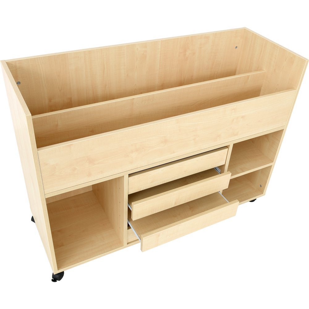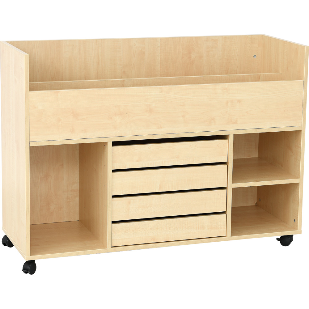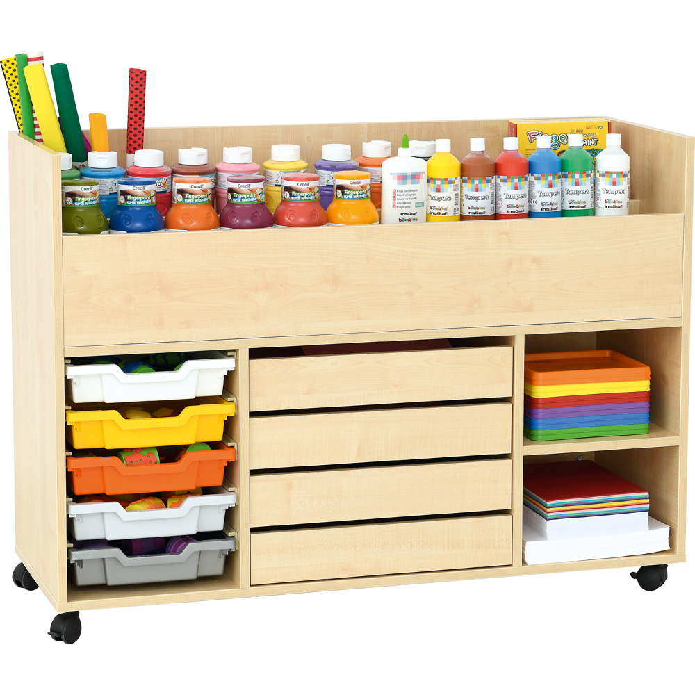 • 4 Schubfächer, 1 geräumiges Fach für bis zu 5 flache Kunststoffbehälter (3720xx, in vielen versch. Farben, separat bestellbar)
