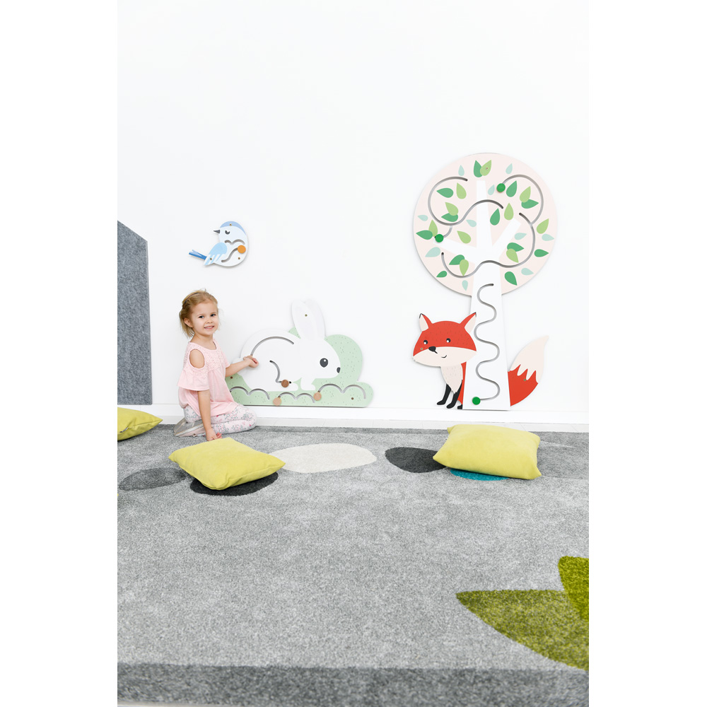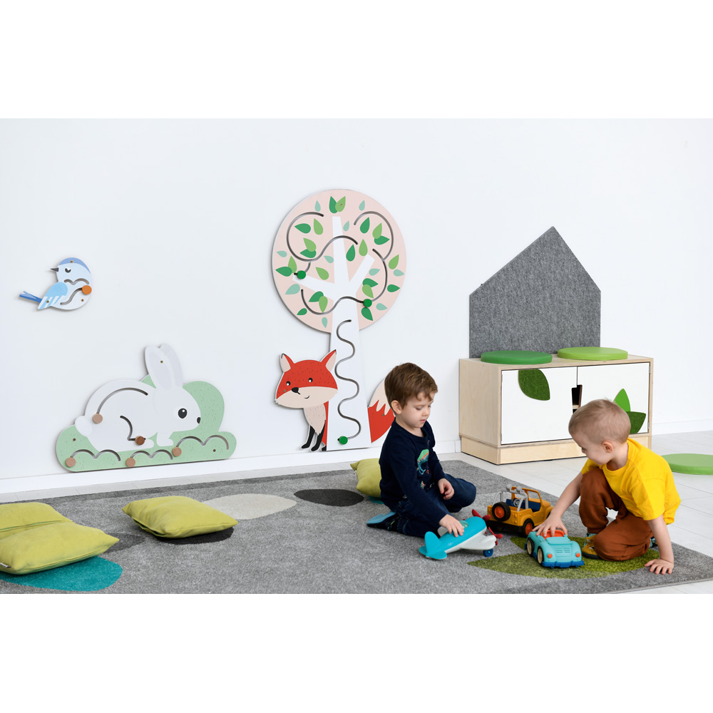 Die farbenfrohen Wandapplikationen sind ein wunderschöner Raumschmuck und gleichzeitig eine tolle Beschäftigung für die Kleinen. Auf den niedlichen Motiven gibt es viel zu entdecken und integrierte Schiebespiele wollen ausprobiert werden. So tragen sie ganz nebenbei zur Verbesserung der Feinmotorik bei. Die Applikationen passen hervorragend zu unseren Quadro Themenschranksets, aber auch zur Echtholzkollektion, diversen Spielecken wie Flora (099386, 098372) oder den Filz-Wandapplikationen (842184-842190).