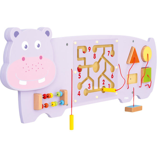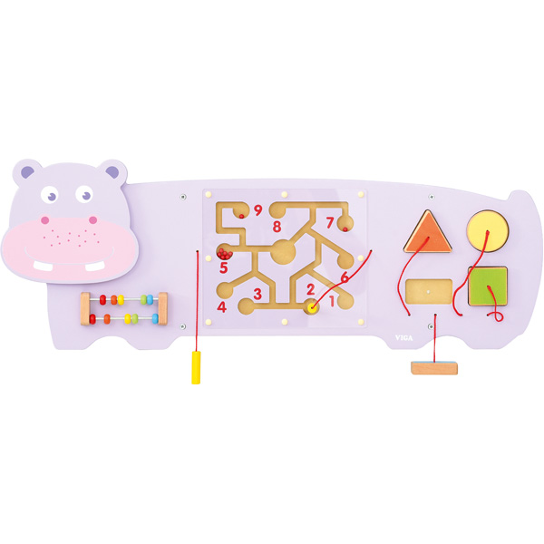 Tafel in Tierform mit sensorischen Elementen. Die Manipulationselemente stimulieren den Tastsinn und entwickeln die motorischen Fähigkeiten, interessante Farbeffekte wecken die Aufmerksamkeit der Kinder, einige Elemente erzeugen Geräusche. Montageelemente enthalten.