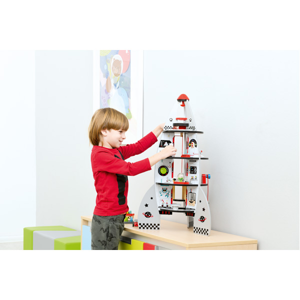 Mit dieser Vierstufenrakete mit Planetenlandefahrzeug startest du zu neuen Welten! Begib dich auf eine Fantasiereise in den Weltraum. Such dir einen Spielgefährten und denkt euch eine Raumfahrergeschichte aus. Zeige deinen Freunden was deine Astronauten und Aliens alles auf den verschiedenen Ebenen der Weltraumrakete machen können!