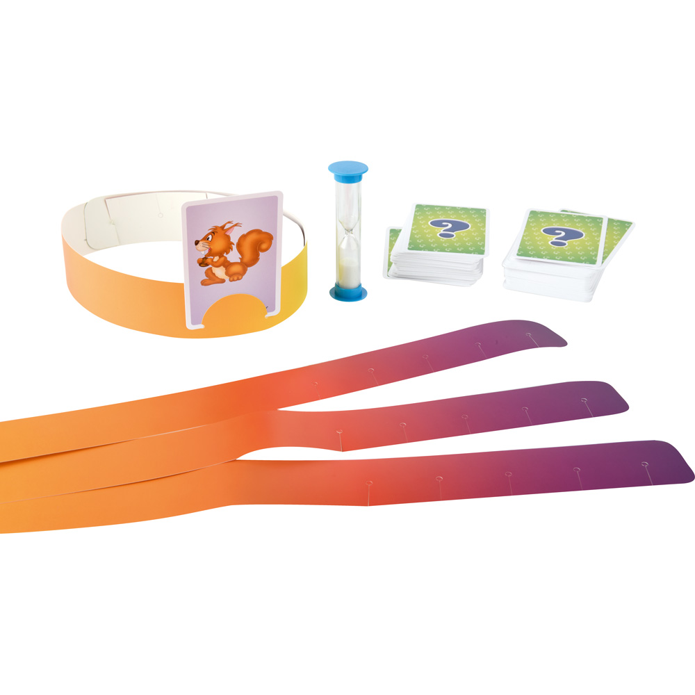 Ein Spiel für die ganze Familie! Jeder Spieler zieht eine Karte vom Stapel und befestigt sie am Stirnband des Nachbarn zu seiner Rechten. Die Aufgabe ist es, zu erraten, was auf der Karte abgebildet ist. Nur wer die richtigen Fragen stellt, gewinnt das Ratespiel. Man darf nur mit Ja oder Nein antworten, entsprechend sollten die Fragen formuliert sein. Das Spiel lehrt logisches Denken, präzises Formulieren von Gedanken und Analysieren der gewonnenen Informationen.