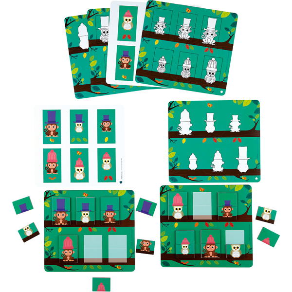 Aus den Bildkärtchen setzen die Kinder lustige Baumbewohner zusammen und verteilen sie auf dem Ast. Wer darf wo sitzen? Mal geht es nach Grösse, mal nach Farbe und anderen Merkmalen. Schult die räumliche Orientierung und den Wortschatz. Mit Elementen zur Selbstkontrolle.