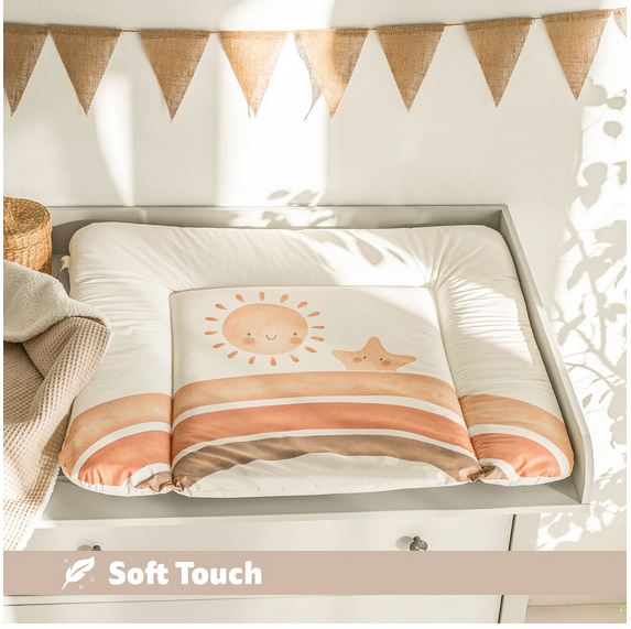 Das Original - Die Julius Zöllner Wickelunterlage "Softy" ist in vielen Designs und Grössen erhältlich. Die praktische Unterlage ist durch die Füllung aus Polyestervlies besonders weich und gemütlich. Der Rand ist an 3 Seiten erhöht und schützt so vor den harten Rändern der Wickelkommode. Die phthalatfreie Folie ist hygienisch und kann mit einem feuchten Lappen abgewischt werden. Die Wickelunterlage wird in Handarbeit vernäht. Weiche Polsterung. Gefüllt mit hochwertigem Polyestervlies, erhöhter Rand für mehr Sicherheit. Sanft zu Babys Haut- Hergestellt aus hochwertiger, hautfreundlicher und abwaschbarer PVC-Folie. Standard 100 by OEKO-TEX® zertifiziert. Schadstoffgeprüft nach Standard 100 by OEKO-TEX® und für Allergiker geeignet. Hygienisch und pflegeleicht - Die hochwertige, wasserdichte PVC-Folie kann mit einem Tuch feucht abgewischt werden.