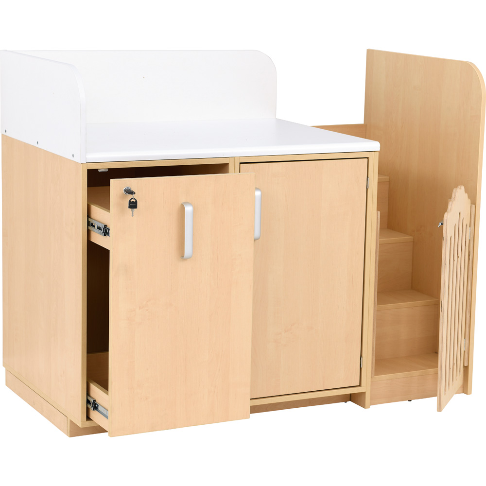 • Arbeitsplatte mit Sicherheitsaufkantung (H 25 cm), wasserfest
