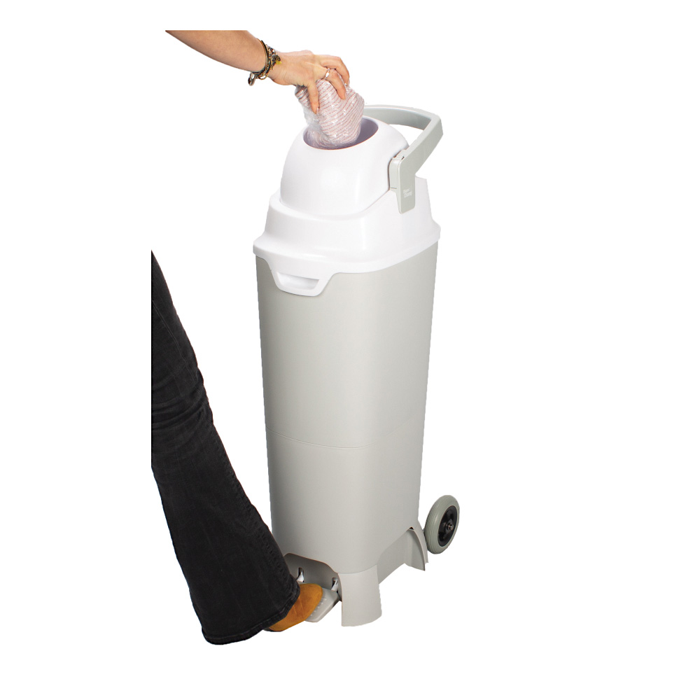 Windeleimer Diaper Champ Maxi Handsfree mit Rollen wurde speziell für Kindertagesstätten und öffentliche Wickelräume konzipiert.