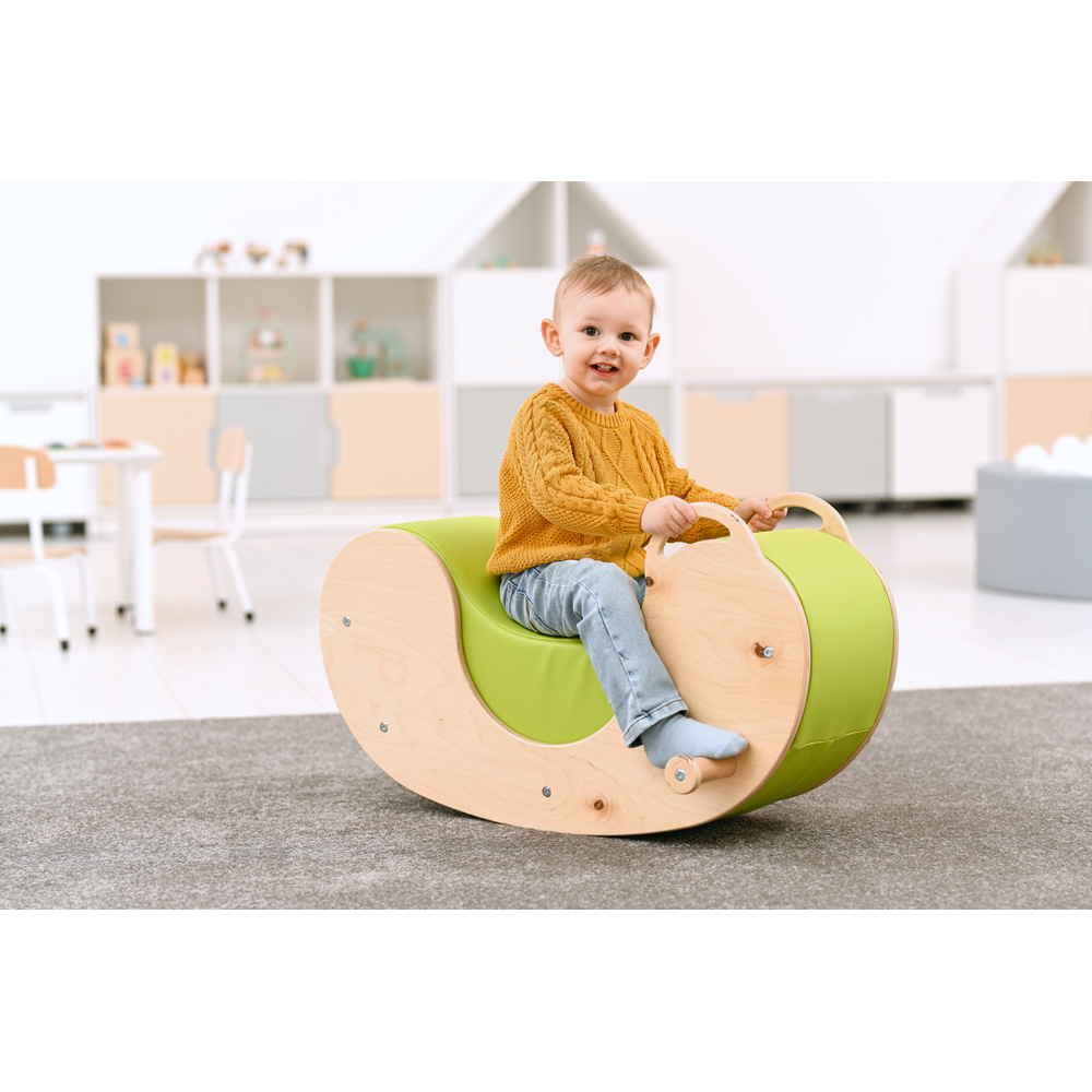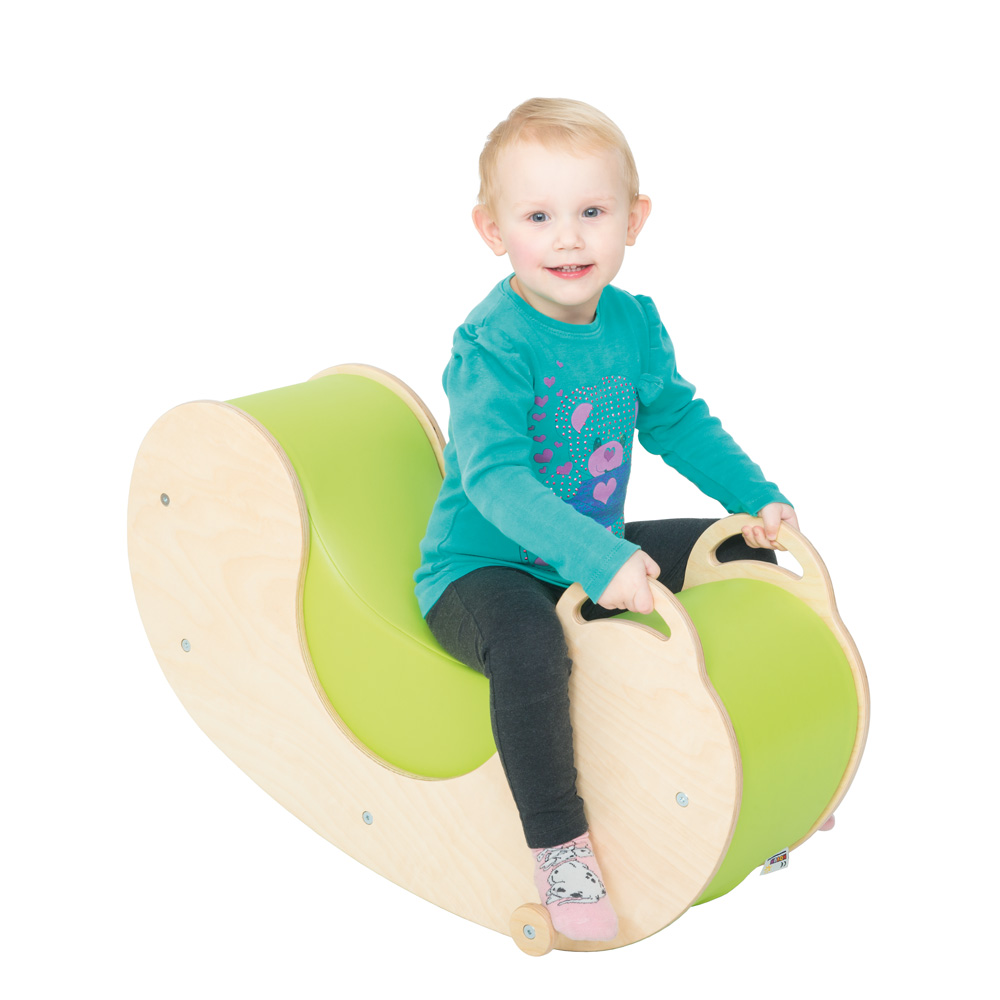 Eine moderne Wippe mit Seiten aus hochwertigem Sperrholz mit weichem Schaumstoff gepolstert. Sie bietet jedem Kind viel Freude. Die Wippe verfügt über praktische Griffe und Fussstützen. Alle Kanten und Ecken sind abgerundet.