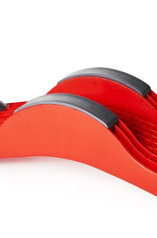 Die rutschfeste Oberfläche bietet sicheren Halt für die Füsse, während der zentral mit Kunstgummi versehene Auflagepunkt die Quetschgefahr reduziert und den Boden vor Beschädigungen schützt.
