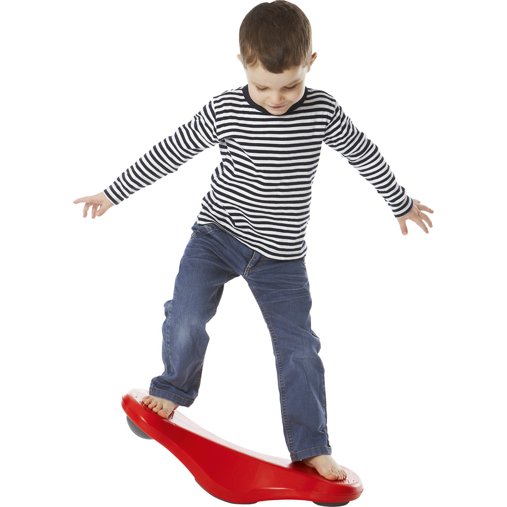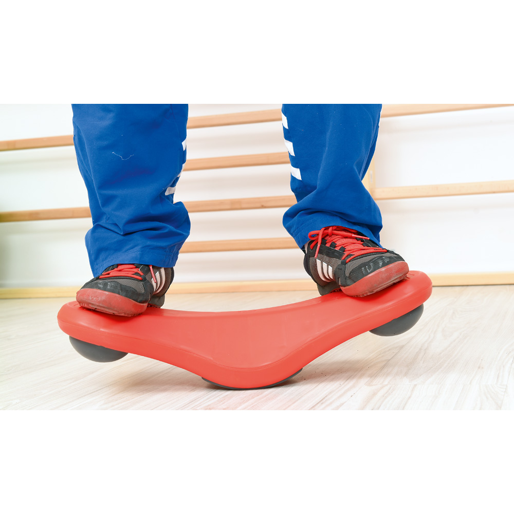Komprimierbare Kunstgummi-Auflagen an der Unterseite sorgen für einen weicheren und gleichzeitig dynamischen Wippeffekt, der Kinder zu Bewegung und Gleichgewichtstraining anregt.