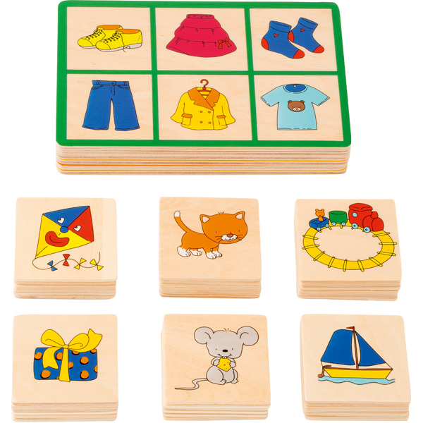 Lernspiel zur Sprachförderung mit Fokus auf Wortschatz und Erzählkompetenz. Die verdeckt auf dem Tisch liegenden Bildkärtchen werden nacheinander umgedreht und sollen auf den Bingokarten wiedergefunden werden. Wer füllt als erster seine Bingokarte? Und wer kann zu den Abbildungen auf seiner Bingokarte eine kleine Geschichte erzählen? Verschiedene Spielvarianten sind möglich: Bingo mit Wortbenennung, Team-Bingo, Bildgeschichten erfinden einzeln oder gemeinsam uvm.