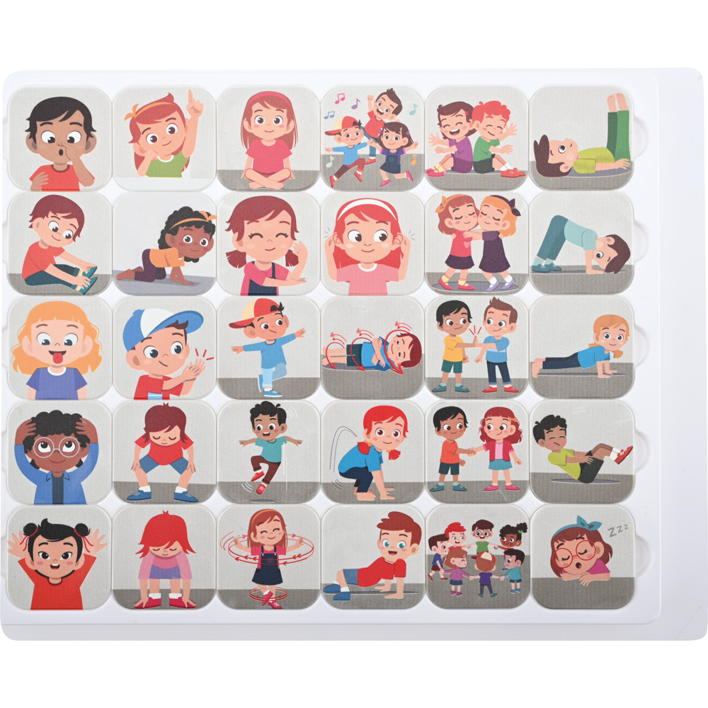 Die thematischen Täfelchen für eine bestimmte Kategorie (619002-619011, separat erhältlich) werden auf den dafür vorgesehenen Flächen auf dem Board (619001, separat erhältlich) platziert. Es ertönt ein Signal oder das Gerät vibriert, wenn ein Täfelchen falsch platziert ist. Ein Lernspiel, welches die Kinder dazu anregt, ihren Seh-, Hör-, Tast- und Bewegungssinn einzusetzen. Es hilft den Kindern, ihren Wortschatz zu erweitern, untereinander zu kommunizieren und fördert die soziale Kompetenz, wenn es als Rollen- oder Gruppenspiel verwendet wird.