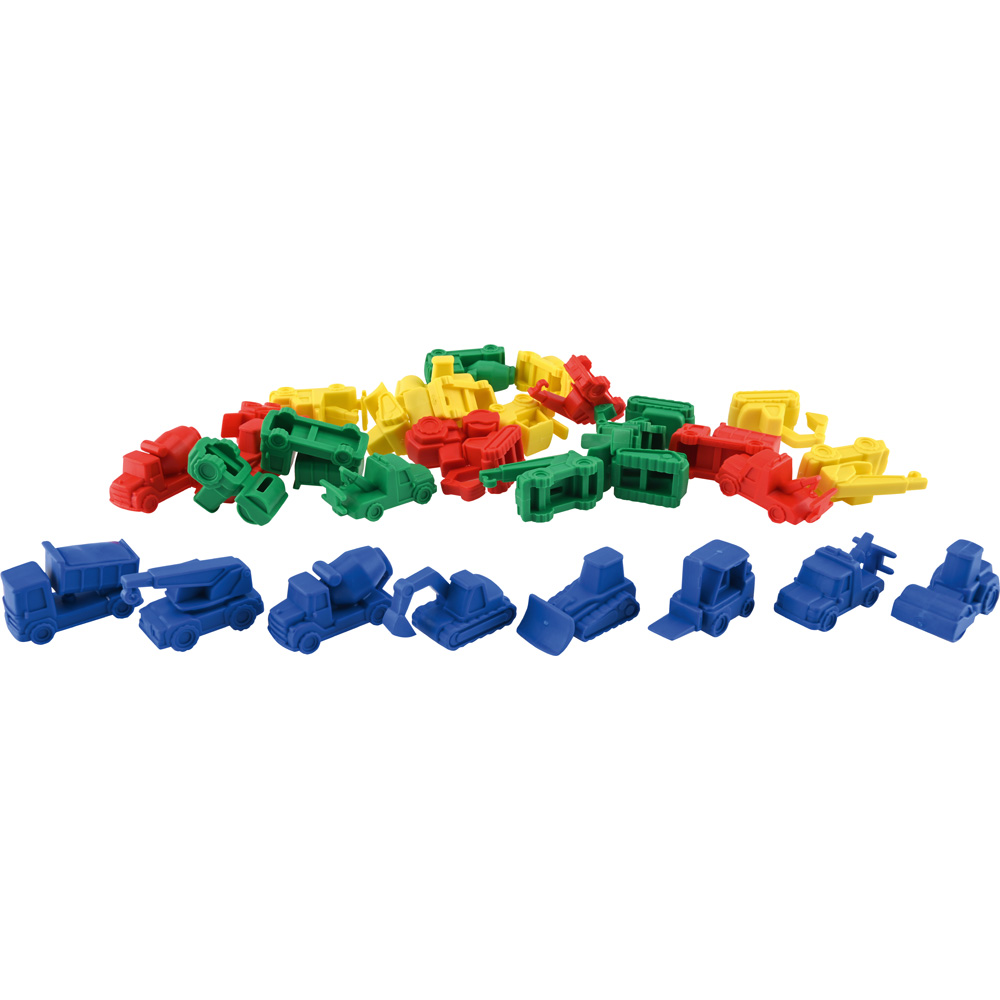 Spielerisch zählen lernen – mit diesem Set bunter Gummifiguren gelingt das garantiert. Kinder können 8 verschiedene Baufahrzeuge in jeweils 4 Farben nach mehreren Vorgaben sortieren und abzählen. So entwickeln sie erste mathematische Fähigkeiten und schulen das logische Denken.