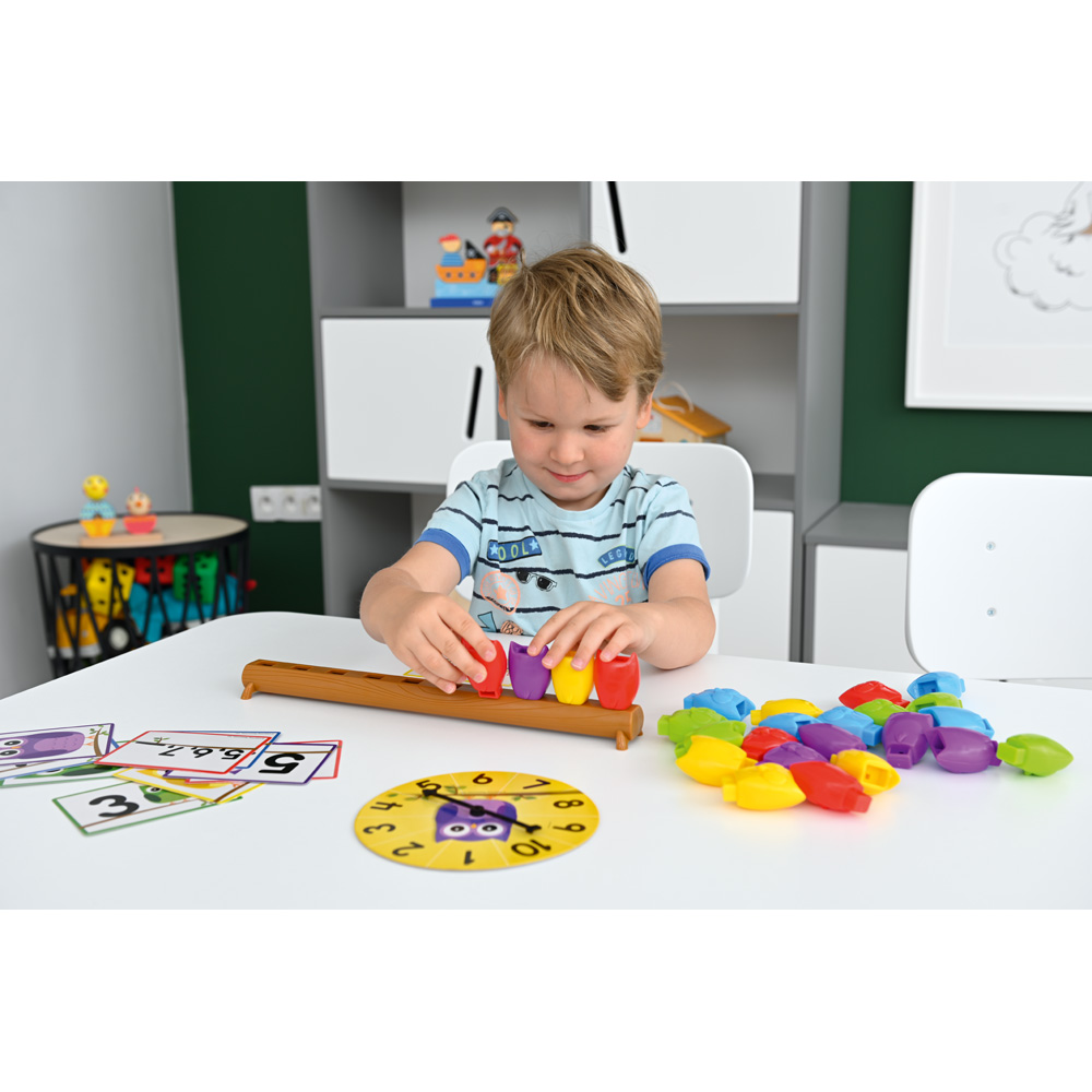 Ein Lehrmittel perfekt zum Fördern früher mathematischer Fähigkeiten wie Zählen und Sortieren! Mit den farbenfrohen Eulenfreunden wird es viel leichter, die erste Schritte ins Zählabenteuer zu wagen.