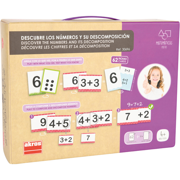 Das Kartenset nimmt die Kinder mit auf eine erste Entdeckungsreise in die Welt der Zahlen und legt die Grundlagen für das numerische und mathematische Denken. Auf kreative Weise lernen die Kinder die Zahlen bis 10 verstehen. Durch intuitive Aufgaben werden Komposition, Zerlegung, Gleichheit, Äquivalenz, Addition und Subtraktion nahegebracht.