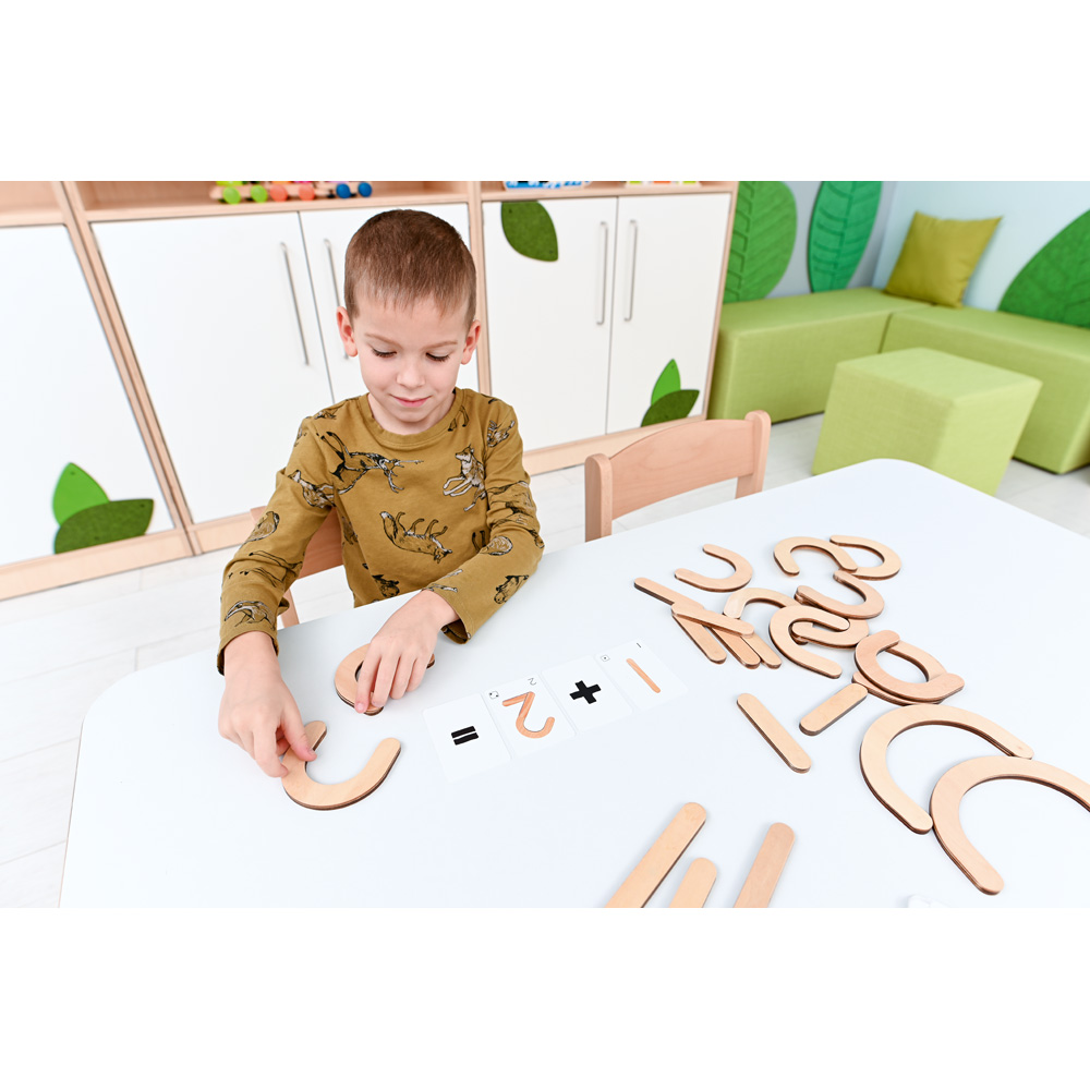 Zahlen legen und Punkte sammeln! Welche Zahl ist die grösste? Wie lautet die Summe? Wie sieht eine Acht aus? Eine unterhaltsame und kreative Methode zum Üben von Zahlen, Rechnen und Mathematik. Zum Bilden der Zahlen werden die magnetischen Holzteile gedreht, gewendet und zusammengelegt.