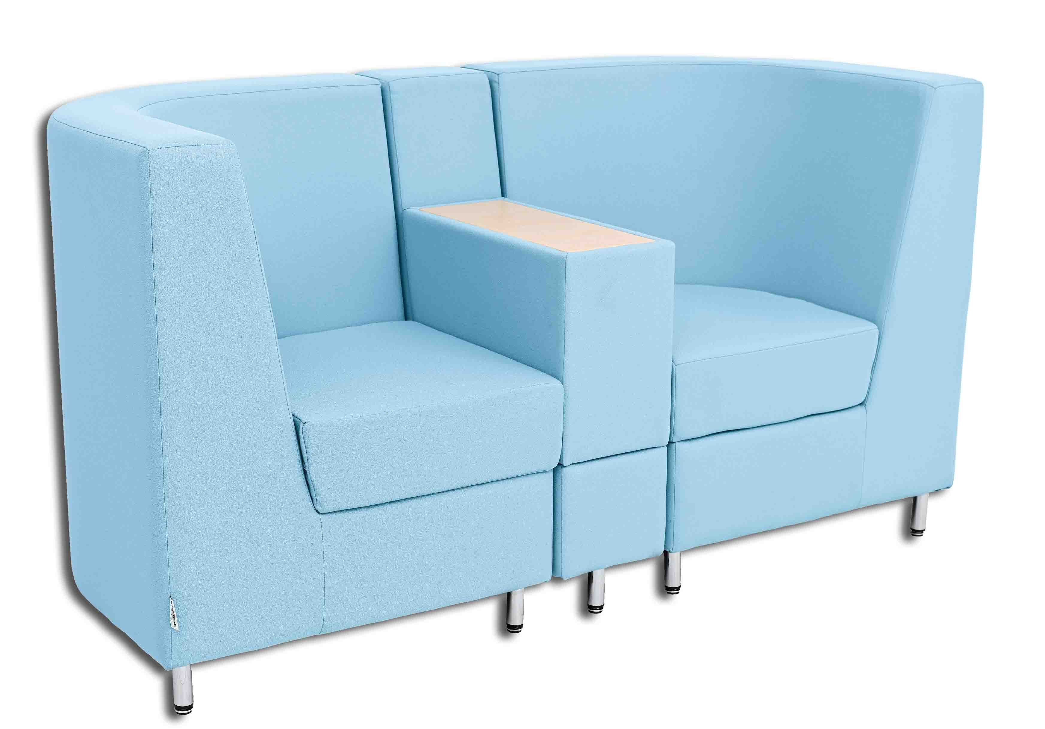 • Masse: B 164 x T 68 x H 89 cmElegantes und modernes Zweisitzer-Sofa mit Tisch, welches mit festem Schaumstoff gepolstert ist. Die Sitze sind aus Modulen zusammengesetzt und auch als Zweisitzer ohne Tisch und als Dreisitzer erhältlich. Der Bezug ist aus strapazierfähigem Polyester-FR-Textil gefertigt und schwer entflammbar. Das stabile Holzgestell sorgt für Standfestigkeit.